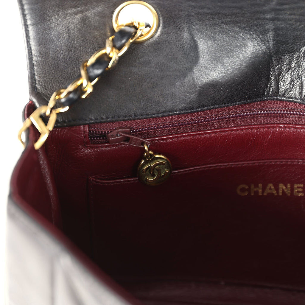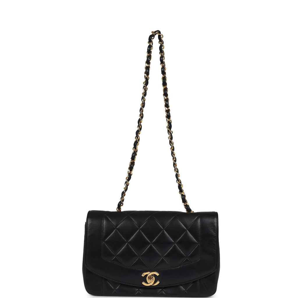 Vintage Chanel Small Diana Flap Bag Black Lambskin Gold Hardware Shop for an authentic vintage Chanel Small Diana Flap in black lambskin with gold hardware in excellent condition at Madison Avenue Couture.