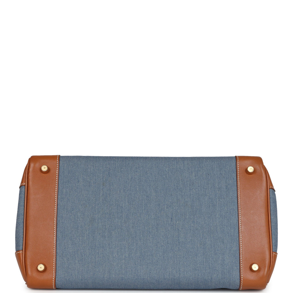 Vintage Hermes Birkin 35 Blue Denim and Gold Gulliver Gold Hardware Shop for an authentic vintage Hermes Birkin 35 in Blue denim and Gold Gulliver with gold hardware in excellent condition at Madison Avenue Couture.