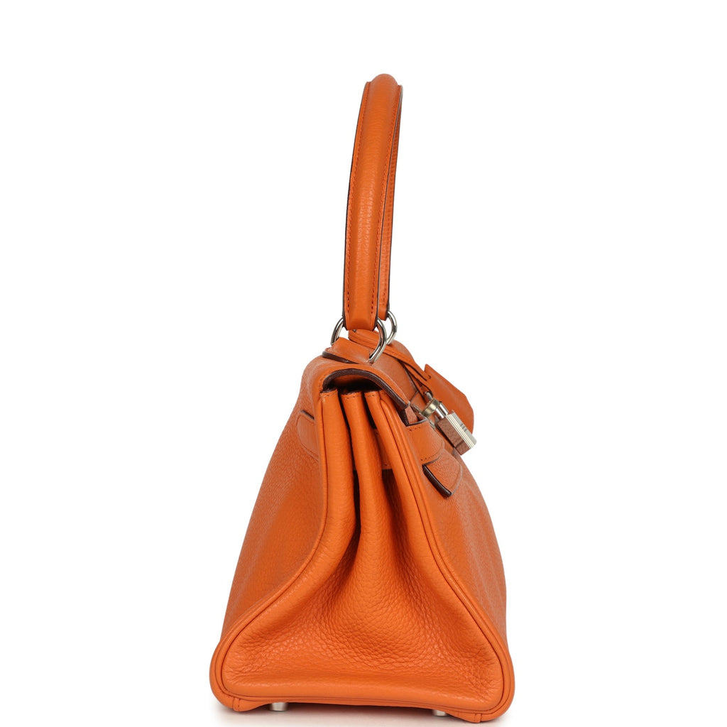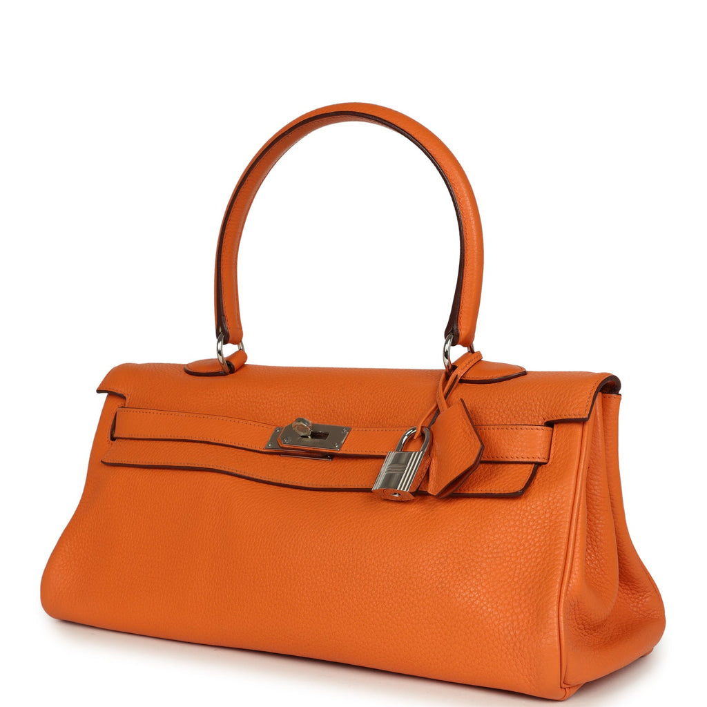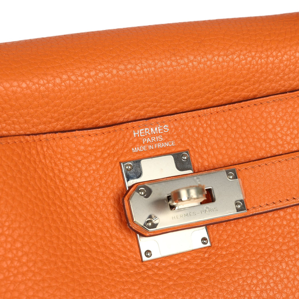 Vintage Hermes Shoulder Kelly 42 JPG Orange Clemence Palladium Hardware Shop for an authentic vintage Hermes Shoulder Kelly 42 JPG in Orange clemence leather with palladium hardware in excellent condition at Madison Avenue Couture.