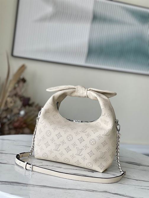 The Why Knot PM handbag Cream Beige is perfect for daily essentials like a phone, wallet, keys and sunglasses. The removable braided-leather chain enables shoulder and cross-body wear.